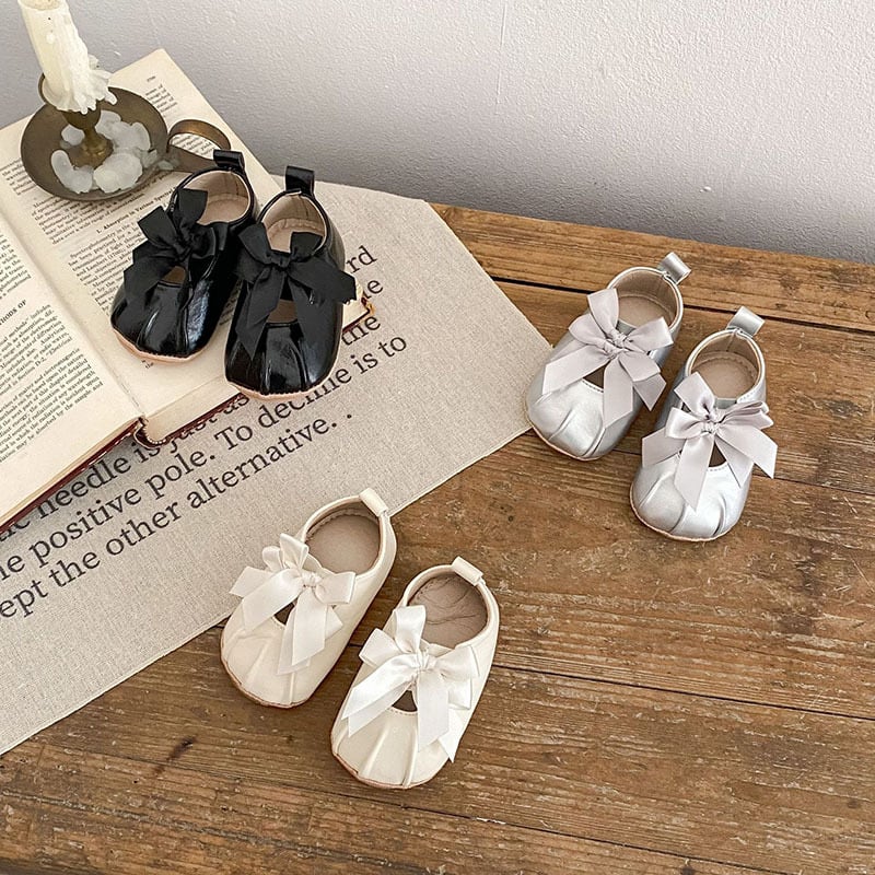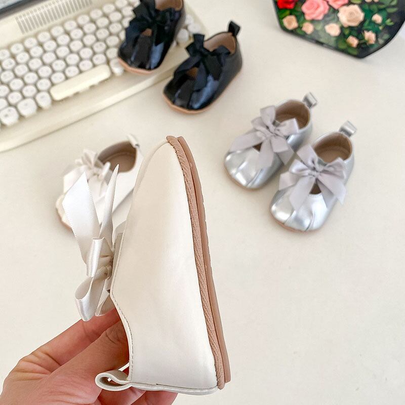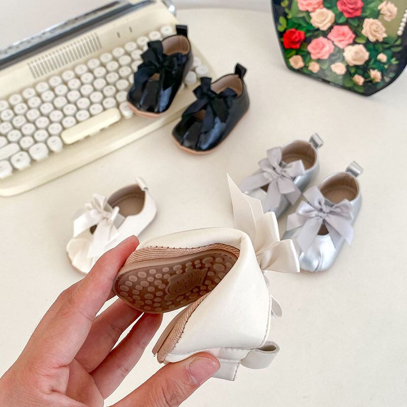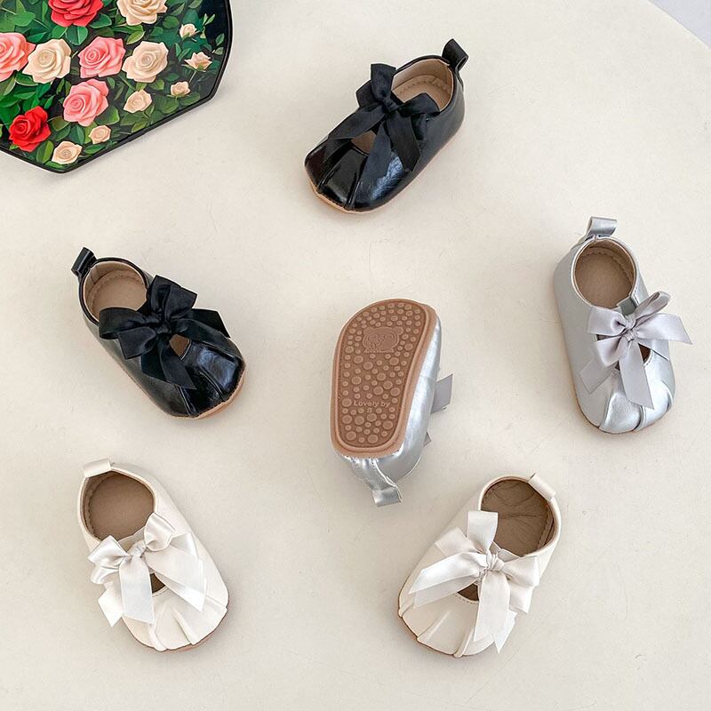 春夏新作 ガールズ 0-18ヶ月子供 韓国風リボン PU革シューズ 滑り止め ベビー靴 11-13cm