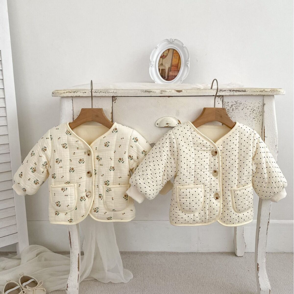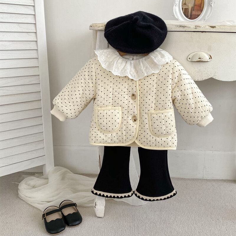 ins 秋冬新作 ベビー服 Vネック 中綿 ジャケット 防寒 コート 花柄 ドット柄 あたっか アウター