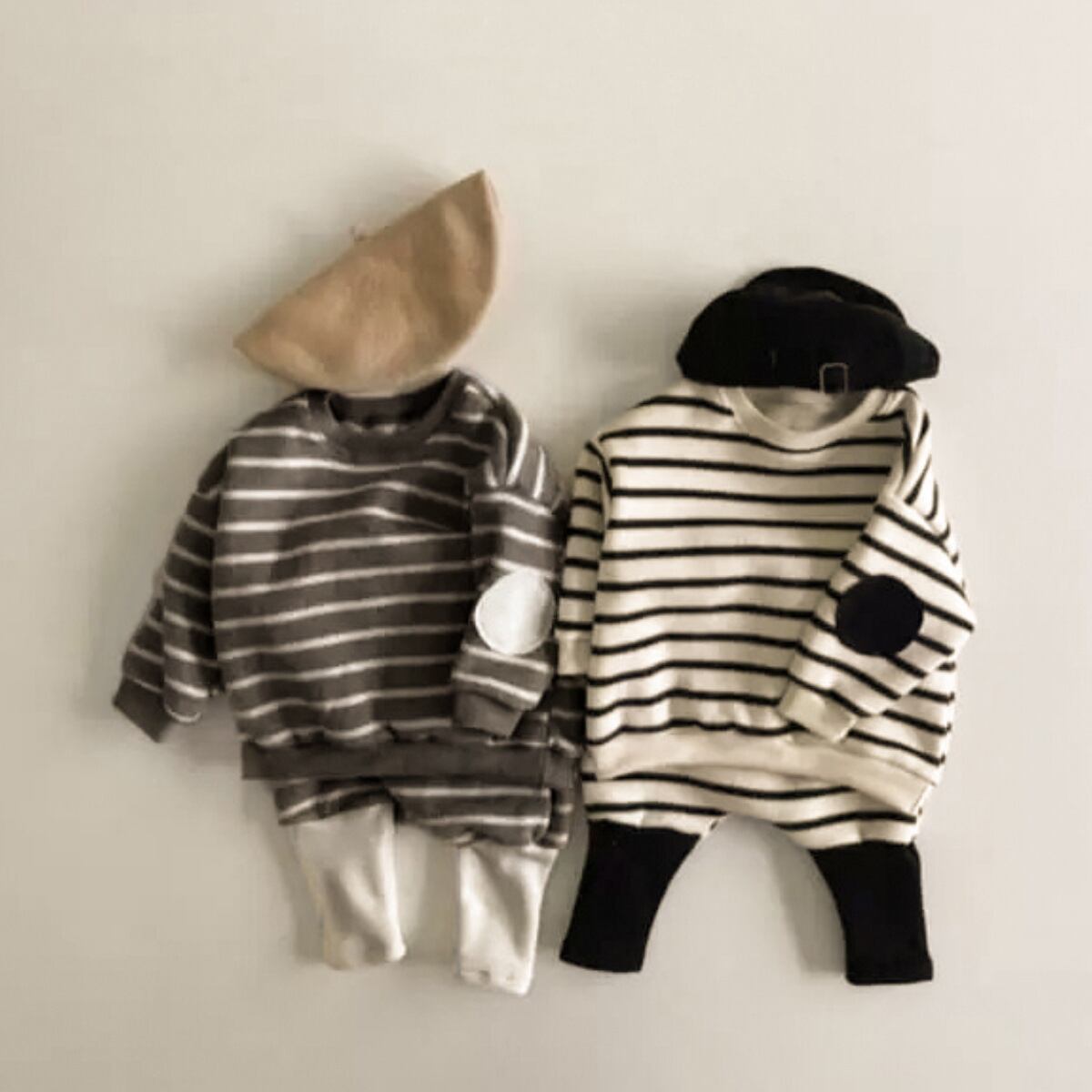 ins 秋新作 子供服 ボーダー柄 セットアップ トップス ロングパンツ カジュアル 男女兼用 柔らか