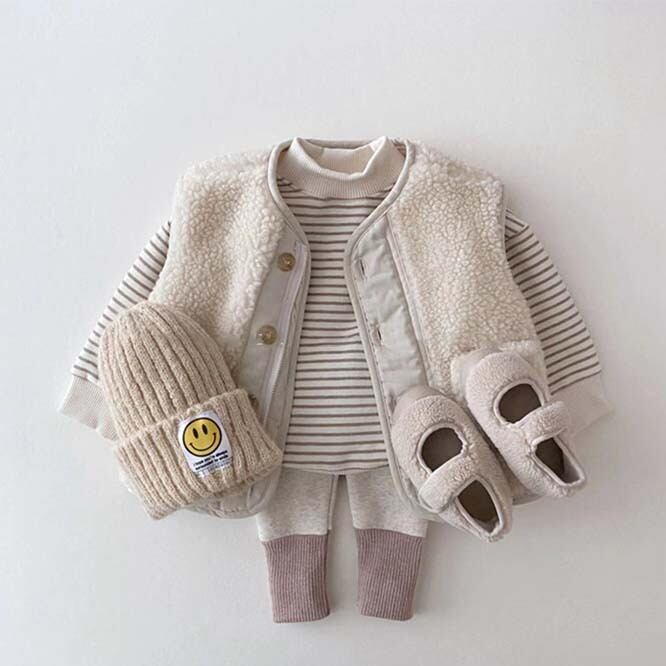 insスタイル 秋 ベビー服 トレーナー ストライプ柄 裏起毛 プルオーバー カジュアル トップス