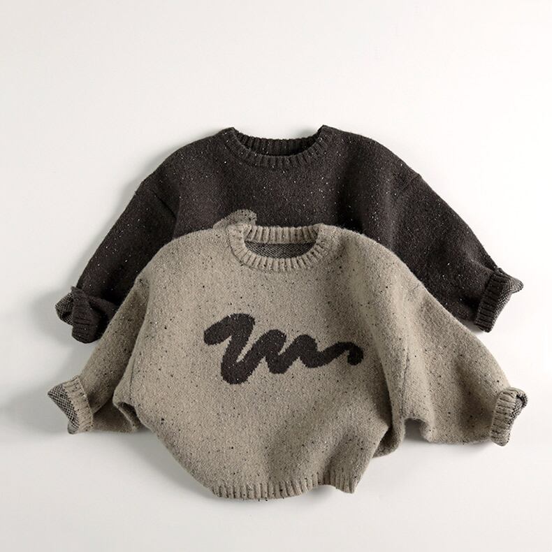 秋新作 子供服 ゆったり 丸襟 セーター 可愛い 柔らか ジャカード ニット トップス 男女兼用