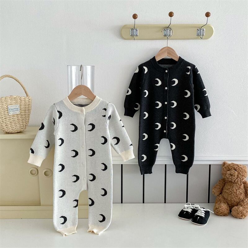 秋冬新作 三日月柄ニットロンパース 66〜100cm