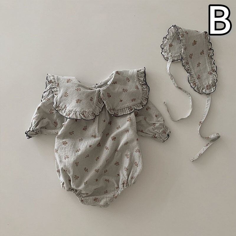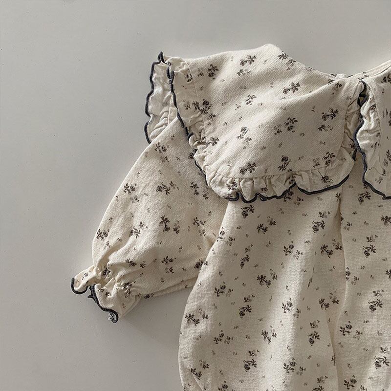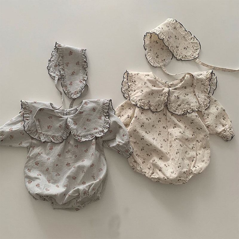 【66〜90cm】花柄ロンパース ヘッドピース付き