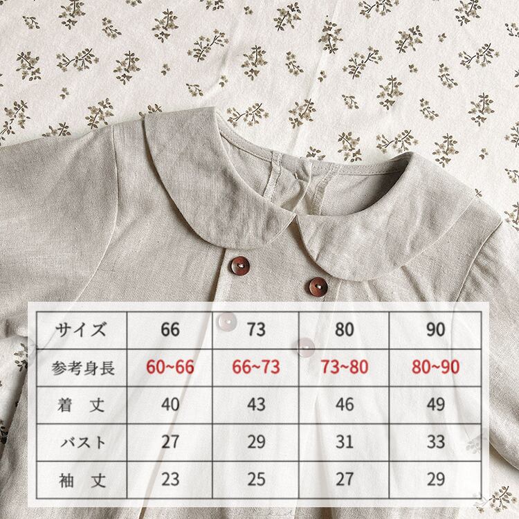 【66〜90cm】リネン生地ロンパース